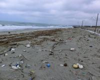 清掃活動の前は、海から打ち上げられたゴミなどがたくさん砂浜に広がっていました。