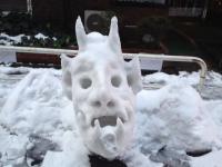 会社の近くのマンション前には、こんなマニアックな鬼の雪ダルマがいました。