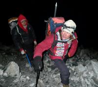 1月14日、午前4時、アイランドピーク最終キャンプを出発!ダワタシ・シェルパ、ニマ・タシ・シェルパ、平賀淳カメラマン、そして私と合計4人。アイランドピークは私にとっても思いで深いピークで、私が初めてヒマラヤの頂に登ったのはこのアイランドピーク。1993年の4月で、同年6月にマッキンリーに挑戦し登ったのだが、その直前にアイランドピークで高所順応をかねてトレーニングを行っていたのだ。あの時は若干19歳。若かったなぁ〜 いつの間にか35歳になってしまいました。
