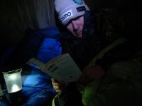 アタック前夜、テント内にて読書