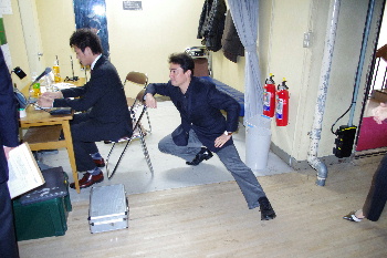 舞台用の竹竿でお茶目にはしゃいでいます!