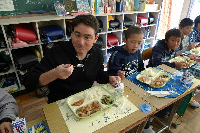 私もちゃっかり給食を頂いたのですが、懐かしい感じ。お米が凄いもちもちしていて美味しかったです。こんな美味しいのだったら毎日食べたいっす。(汗)