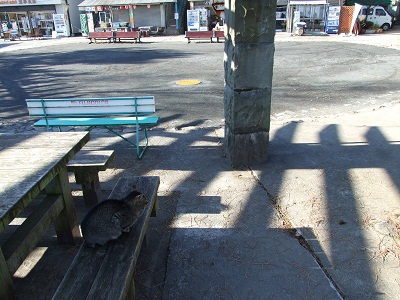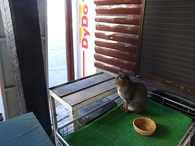 御岳山駅到着、駅にいた猫