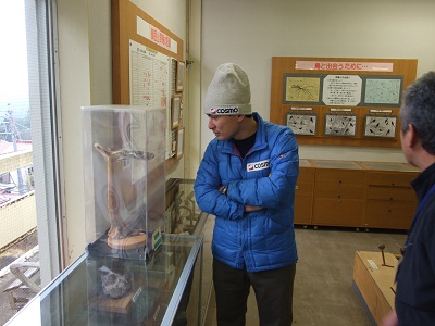 ビジターセンターの館内を観察。モモンガの剥製の前にて。