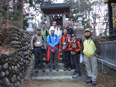 神社裏に御岳山山頂がありその前で登頂記念撮影。