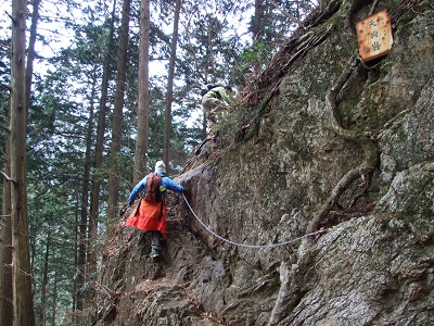 ん?天狗岩って・・・。鎖がつけられているので登ってみる。