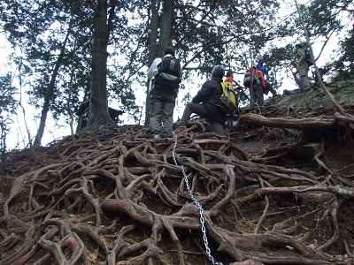 登ってみると木の根が張り巡っている。