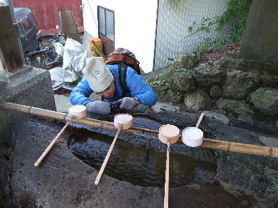 そして、こだわりの写真家野口健氏。水のしたたるところを撮影中。(この写真、近日中に野口健氏のブログにアップされることと思います。お楽しみに)