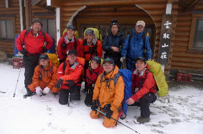 雲取山荘玄関にて(提供:野口健事務所)