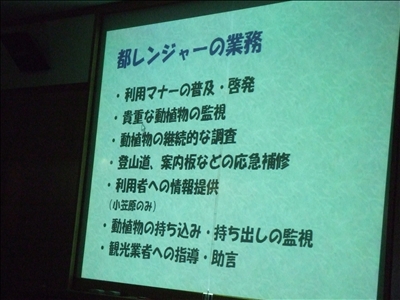 私も、彼らの活動する高尾山や雲取山の多摩地区だけではなく、小笠原諸島のことも知った上で、もっともっと具体的に都レンジャーのことを学び、彼らのチカラになるために自分がどうするべきなのか、さらにはどのようにお手伝いできるのかを真剣に考えていきたいと思う。