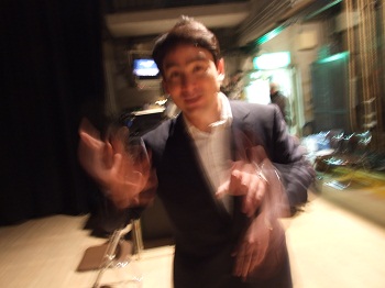 ステージ脇で話をするんですが、手が巧みに動きます。