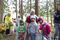 それ以外の方には、山道を抜けてごみのコンテナを設置した場所までのゴミ袋のリレーをお願いしました。途中から雨も降り出し、寒さもあって大変な状況の中、実にたくさんのごみを収集していただきました。ほんとうにありがとうございました。