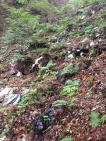 奈良井川沿いの山の斜面にごみが堆積している清掃場所です。