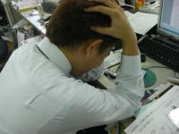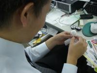 (晴れるのを祈って、デスクでてるてる坊主を作るの図)