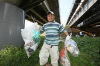 橋の近くのゴミは、地中に埋まっているものも多くて大変でした。