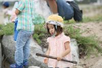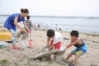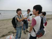 ゴミ拾いの合間で、柿ピーが参加者の方にインタビューしてますよ!