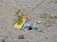 砂浜には海岸で楽しく遊んだ後のゴミが残っていました。