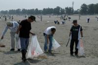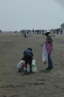 ゴミ袋片手に砂浜に散らばっていく参加者の皆さん。