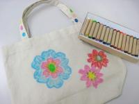 描きごこちや発色は普通のクレヨンと変わりませんが、絵を描いたあとにクッキングシートをあててアイロン掛けすると、クレヨンが密着して色が落ちにくくなります。