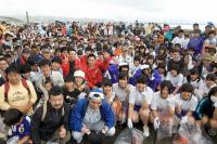 「ゴミを拾うぞー!」「おー!」の瞬間。
