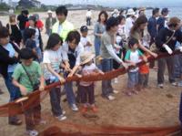 ゆっくりと30分程の時間を費やして、長い網を交代で一生懸命引っ張っていきます。