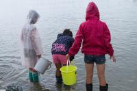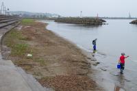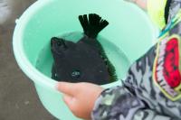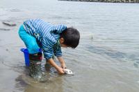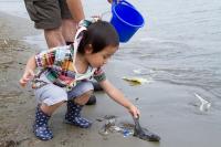 今回は清掃活動終了後に行ったヒラメの放流の様子を