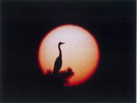 夕日を背にたたずむシラサギ。
