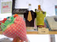 奥に見える、ネクタイをしたシャツは、ワインなどのビンを入れるものなんですよ!