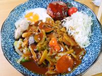 人気のハンバーグカレーです! 特別に半分は女性に人気のチキンカレーにしていただきました^^
