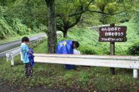 清掃場所で、ドライバーに注意を呼びかける看板たち