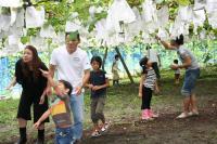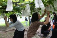 ぶどう園から戻ってくる参加者の皆さんを迎える準備が行われていました。