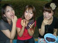 ビニールハウスの中でぶどう狩りができるので、小雨もへっちゃら♪