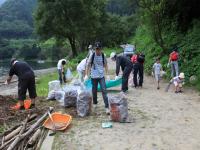 右岸道路 青蓮寺橋から弁天橋を担当する13班の清掃活動も佳境に。