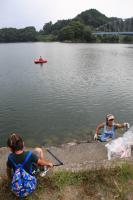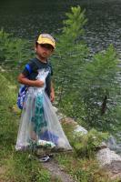 ここでも、ちびっ子パワーは健在です。みんなで一生懸命、湖をきれいに。