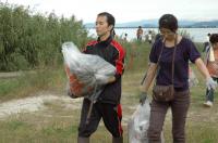 拾ったゴミを収集する作業…