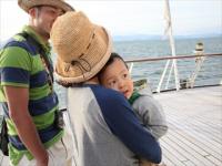 パパになだめられながらも泣くのを我慢していたお子さん。