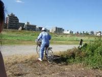 自転車で見回る管理人さん