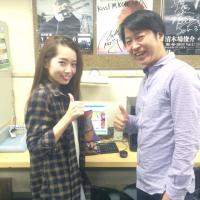 当日参加されるサウンドクルーの中野耕史さんと、たまたま近くにいらっしゃった、三宮駅西口で。の水曜レポーターしほちゃんです♪