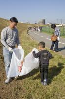 当日は、岡山市原尾島・百間川橋を中心に、北は原尾島橋・南は沢田橋までの一帯を4グループに分かれて清掃しました。