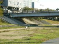 川にかかる小橋を渡って、相生橋のたもとに向かってくださいね。