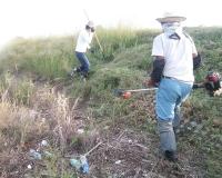 清掃活動時に斜面をのぼるときは、草を刈ったのぼりやすい所からのぼってください。