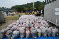 燃やせるゴミが、350袋、燃えないゴミが7袋でした。