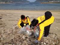 水際ぎりぎりにたまったごみを一生懸命拾ってくださいました。