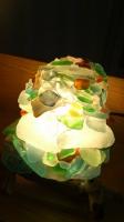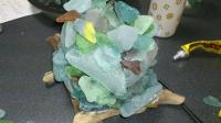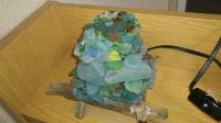 ランプはホームセンターで購入して、流木の上にガラスを一つ一つ積み上げていきます。
