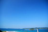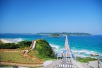 角島大橋と角島 角島と青い空