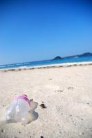 白い砂浜とペットボトル(着て早々にゴミ発見…)