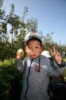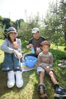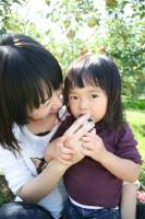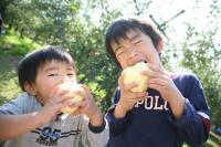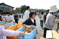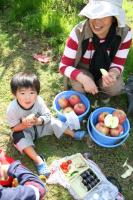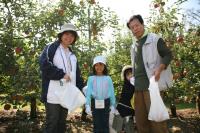 りんご狩り終了後、皆さんにおみやげ用のりんごをプレゼント。