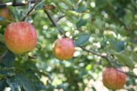 空の青、山の緑、真っ赤なりんご、とってもきれいです。
