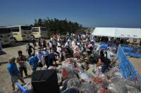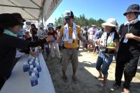 軍手と火ばさみを回収し、飲料水を受け取ってもらいました。