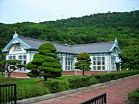緑の中に映える白と青の、お洒落な建物。当時は事務室・宿直室として使われていた建物で、今は当時のポンプ施設や香東川の水を飲料水にする仕組みなどが展示されています。